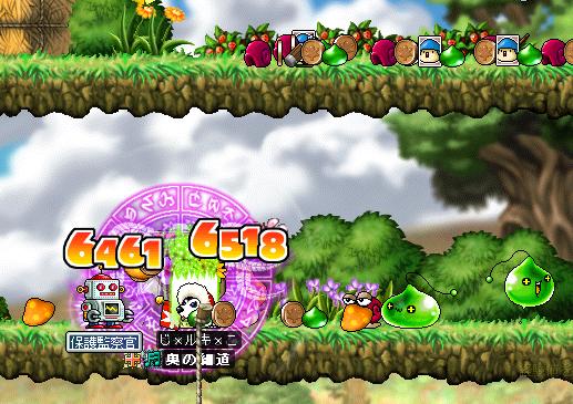 こん~^^台風が過ぎ去って、今日の大阪は、夏に戻ったように暑かったです秋はいずこへ。。。ε= (´∞` ) ハァーさて、今日のめいぽ~(今週はずっと夕方短時間版・・・)時間もさほどないので、サブの投げ娘で、古木の樹液集めに精出す^^;樹液集めと言っても、、、狩場は、火ボアマップですσ(^_^;)アセアセ...レベ上げしつつ、あわよくば樹液も集めると言ったところでしょうか^^アックススタンプの沸きの割合から行けば、1つ前のマップのほうがいいのですが、1つ前のマップは、3段もあるのでロープ移動が面倒で。。。さらに、アックススタンプ以外に、Dスタンプ、ボア、火ボアと出るためETCとか、消費ドロポとか全部拾いきれないのです・・・そのため、沸きが悪くても、火ボアマップとなるわけで^^;このマップなら、時計周りに上段のポータルから→へと狩り進み、↓へ落ちて?、下段右端まで狩り、その後、下段←端まで、狩り、ロープを↑に上がって、1周という、実に単純に回れる^^vこれで、もう少し、アックススタンプの沸きがよければ文句なしなのですけどね^^まぁ そう贅沢なことを言ってはバチが当る?^^;ちょうどSDTにかかったので、期待したのですが、、、樹液ドロポはたったの2個・・・代わりに、装備ドロポが4つソルトシューズ黒(魔靴)、マーティ赤(魔帽子)、ハンターブーツ赤、クリスタルワンド♪←氷娘のネタ武器?^^。。。(狩り中)。。。(狩り中)。。。(狩り中)。。。ずっと火ボアマップも飽きてきたので、ちょうど買い物ロムから復活して、ゾンビソロ狩り中の、みどりsサブを予告訪問してみる^^めいんのじゃりでは、職業柄?^^;ずいぶんお世話になった、ゾンビマップですが、投げ娘で来るのは、実は今日が初めてです^^;記念すべき、ゾンビデビュー?グル狩り開始直後に、投げ娘、レベアップ~♪56レベです^^(そういえば、レベ上げ直前寸止めでやってきたことすっかり忘れてましたσ(^_^;)アセアセ...)狩りの方ですが、狩り感触は、、、56レベなのでレベ的には十分に狩れるはず?なのですが、たこ焼きくらいでは、まだまだ2発確殺率がよくないですね・・・ぐずぐずしている間に、ゾンビお得意?の毒攻撃くらうし・・・(ノ_-;)ハア…毒攻撃をくらうアサシンって、なんだかかっこ悪い;;Jタコヤキを使うと、ふつーのタコヤキの時よりは、2発確殺率が若干上がったような感じです^^;ゾンビ狩りするなら、けちけちせず、Jタコヤキを使えということですね(;´▽`A``時間となり、みどりsに、「落ちるね~」と声をかけ、安置へ上がっていると、しばし狩り続けていたかと思いきや、みどりs いきなりの、レベアップ~!?ぁあ・・・SS撮り損ねたぁ!(ノ_-;)ハア…68レベオメデタボウリング ( ^ー^)ノ ...___● iiiii カコーン3次まであと2レベですく( ̄Д ̄)ノガンバレーーー♪実質20分のゾンビ狩りでしたが、11%↑下手ぴぃアサシンでも、時給30%↑とはゾンビマップ美味過ぎ~(樹液集め終わったら引越ししよう・・・^^;)ちょっとだけ雑談して落ち