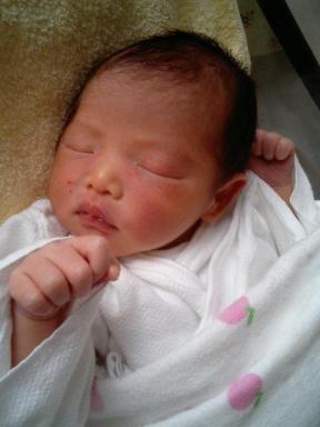 看護士さんにお尻拭きコットンをもらって、久々の新生児オムツ替え。