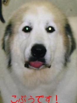 私はピレニーズの「こぶう」です。私の母の名前は「豚吉」みんな「ぶうちゃん」とか「ぶっち」と呼んでました。人間の母さんが横着をして私の名前を考えてくれず何時の間にか「子ぶう」になってました。あまり皆様の前にお目見えする事はないのですが、家では姉犬の「あさり」よりも犬仲間でのランクは上位に位置してます。私は姉のあさりより甘やかされて育ったので今でも結構我がままです。爪切り、耳掃除は大っ嫌い。ご飯もあさりちゃんより先にもらわないと気が済みません。今日は久しぶりのシャンプーでした。お母さんはいつもニューファンが優先で私たちピレは後回し・・・ドッグショーもなかなか連れて行ってもらえません。お姉ちゃんのあさりはチャンピオンになってるのに私はず~っとCCカード2枚のまま・・・・BYふて腐れ子ぶうでした。