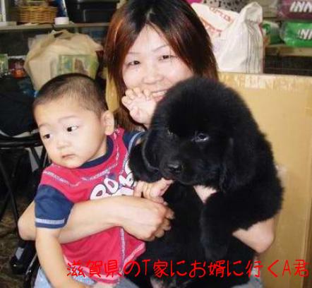 先週「こちゃん&ライ君」の子犬2頭が巣立って行きました。A君は滋賀県のオーナーさんの元へ巣立ちました。このお宅には4歳のニューファンの女の子「姫ちゃん」がいます。勿論A君の新しいお名前は「殿」。今頃はお姉ちゃんに甘えてるかな?B君は熊本県のオーナーさんの元へ巣立って行きました。この子は生まれて直ぐは小さかったので母が一番手を掛けて育てた子。今だ甘えん坊で抱っこが大好きです。お姉ちゃんの「ここちゃん」と一緒に山口県まで送って行きました。2頭のオーナーさんはどちらも凄く優しそうな方でした。どちらの子も可愛がって頂けそうです。幸せにね・・あと1頭残ったC君、実は出べそが発覚しました。明日は手術です。もうちょっと長い事実家に居ようね。C君、9月からベビーでショーチャレンジの予定です。「もじゃこ」と一緒に頑張ろうね。先月、新潟県に巣立って行った「乱ちゃん&ライ君」の娘「ぶ~たこちゃん」は2回目のワクチンを終え元気に育っています。「破壊大魔王です」とオーナーさん。子犬は元気が一番ですとも!30日、京都のドッグショーに蘭丸君を連れて行って来ました。結果はエクセレントグループで2枚目のCCを獲得しました。暑い中、蘭丸君よく頑張りました。後期もこの調子で行こうね。