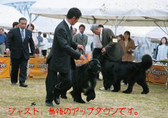 一昨日の23日はジャストの8回目の誕生日でした。大きな病気もなく無事8歳のバースデイを迎えられた事を神様に感謝します実はジャスト君、前回の健康診断の時に弱冠の不整脈がみられ1ヶ月に1回は心電図&血液検査(これは3ヶ月に1度)で病院に行ってます。3ヶ月前に心室肥大の疑い?と言う結果が出たので毎月通っているのですが今回はほぼ正常。まあ、年だから仕方ないかと諦め半分ですが、投薬するか否かを毎月の結果を見ながら決めることになっていました。とりあえず一安心です。血液検査の結果も異常なし。健康体のジャストですが、最近は寝ている時間も多く、以前より少し大人しくなって来ています。8歳にしてやっとまったり出来るニューファンになりました。体重は約50キロとドッグショー時代に比べると10キロ減。足腰の為にはこの位スレンダーな方がいいかも?と一人で納得しています。若犬の頃に傷めた左肩がたまに痛くなるらしく、シャンプー後などは少しびっこを引くこともあります。サプリメントのグルコサミンは欠かせません。確実に老いていっているジャスト君ですが、可愛さはひとしおです。いつまでも元気でいて欲しいものです。画像は、4月に四国インターで撮ったものです。ジャストを2歳まで育てて下さったハンドラーさんに引いて頂きました。5年振りでしたが、ジャストは良く覚えていました。Iハンドラーに呼ばれると千切れんばかりに尻尾を振るジャスト。実はみんなでジャストがIハンドラーを覚えているかどうか心配していたのですが・・・・そこまでお馬鹿ではなかった様です。嬉しそうな顔で走るジャスト。こんな表情を見るのは久しぶりでした。AOM(ニューファンオスチャンピオンクラス5頭の2番手)を決めるのにジャッジに悩まれ、何度も見比べられていたジャストとフラッシュです。結果はジャストの負け・・5歳前のフラッシュと8歳近いジャスト。どうせなら、ジャストに勝たしてくれれば良かったのにね。この日、BOBだったニューファンは見事ベストインショーでした。引退記念にIハンドラーと一緒に走れてよかったね、ジャスト君。ちょっと前肢が痛かっただろうけど(ジャストはこの日びっこを引いていました)元気な内にもう一度Iハンドラーに引いてもらいたいと言う望みが叶いました。せめて10歳の誕生日を迎えるまで長生きして欲しい、最期の日を迎えるまで自分自身で歩いて欲しいという母の願いです。がんばろうね、ジャスト君。