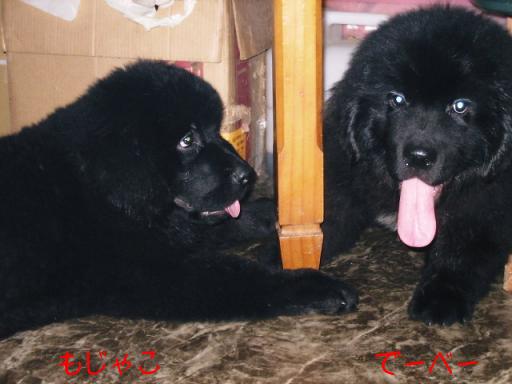 またまた久しぶりの更新です。もう直ぐ3ヶ月半のもじゃこは16キロになりました。毎日、乱ちゃんにお守りされスクスク育っています。生まれて直ぐから乱ちゃんに育てられた「もじゃこ」は当然「乱ちゃん」が母犬と認識しています。さて?「乱ちゃん」はどうなのでしょうか?生後5日目の自分の子犬と一緒に育てた「もじゃこ」ですが果たして「他所の子」だと思っているのか「自分の子」と思っているのか?どちらにしても、我が家残留のもじゃこは元気いっぱい。昼間は晴れた日はお外ですが、夜は乱ちゃんと家の中を走り回っています。嫌々ながらお守りをしている乱ちゃんですが、見ていると本当に「母子」です。実の母である「ぶりちゃん」や父犬の「フラッシュ」の側に行っても相手をしてくれないので「もじゃこ」はいつも「乱ちゃん」を追い掛け回しています。先週の土曜日、「リキ君」「蘭丸君」の同胎犬の「レイ君」にお花を供えに行って来ました。熱中症で亡くなって早や1年が経ちました。今年も暑い夏がやって来ました、「エアコンが壊れていないか?」「停電していないか?」と心配で長時間、家を空ける事が出来なくなりました。二度とあってはならない事です。肝に銘じてこの夏を過そうと思います。去る6月4日、「フラッシュ君」が胃捻転を起こし手術しました。順調に回復し、今は元気ですが、母は目の前が真っ暗になりました。色んな人たちから「胃捻転」の話は聞いていましたがほぼ90%の犬は命を落としています。今回「フラッシュ君」の場合は起こして直ぐに発見できた事、獣医さんに向かう車中からの連絡で直ぐに手術して貰えた事で九死に一生を得たのだと思います。助けて頂いたJ先生、本当にありがとうございました。「熱中症」 「胃捻転」 ニューファンが若くして命を落す原因の2つです。みなさんも十分気をつけてやって下さいね。