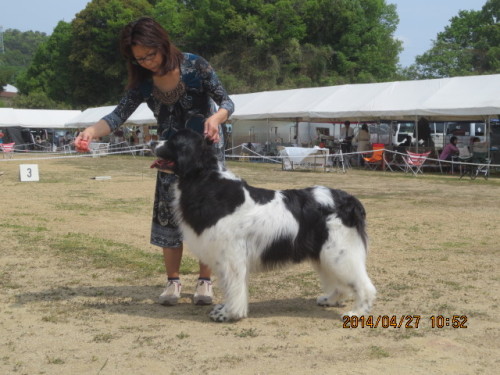 昨年8月に熱中症になり、九死に一生を得た松吾朗。。。三途の川のお花畑を眺めていたのに「松~!しっかりせい~!」「松~!逝ったらいけん~!」と言う母の雄叫びに呼び戻されて8か月が経ちました。丸刈りにしていたコートもここまで復活し、おまけに繁殖能力も復活し「お嬢」との間に6頭の仔犬も生まれました。そろそろまた暑い夏がやって来ます。ほかの子より先にサマーカットにしてやろうと思っています。コートがある松吾朗の最後の写真になるかも知れないと思い今回ドッグショーにエントリーしました。結果はチーンでしたが、リングサイドで松吾朗は母の腕にアムアムしようとしたり松吾朗なりに楽しんだようです。人前にあまりお目見えする事のない松吾朗です。松吾朗の仔犬のオーナー様も松吾朗を見たことがない人がいらっしゃると思います。おっとり、まったり、甘えん坊の松はこんなニューファンです。