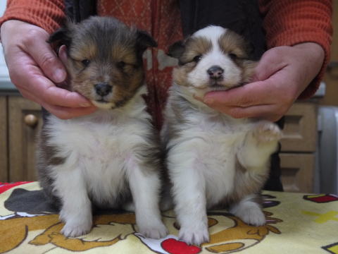 いつの間にやらこんなに大きくなっています(笑)。アジアインターやら、シェルティーの出産やら・・いろいろと忙しくしていました。アジアインターはオスのチャンピオンクラスのレオン君、メスのジュニアクラスの姫ちゃん、アダルトクラスのおかめちゃんの3頭の出陳でした。成績はレオン君がAOM(オスのチャンピオンクラス7頭&ウイナー合わせて8頭中の2番手)、そしておかめちゃんがウイナーズビッチ(メスのノンタイトル犬の中の1番)を頂きました。日本で一番大きなドッグショーで好成績を収められたことを嬉しく思います。レオン君、おかめちゃん、姫ちゃんは3頭とも松吾朗&リリスの仔犬です。本当にボーっとしている松吾朗の仔犬がショードッグとして活躍している事が夢のようです。2月23日生まれの仔犬も松吾朗の仔犬です。女の子2頭オーナー様募集中です。090-8997-9129までお気軽にお電話下さい。
