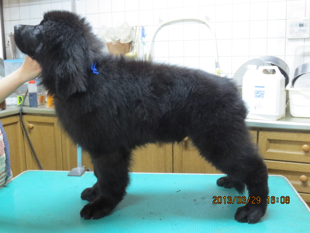 昨年11月から我が家に修行(何の???)に来ていた、蘭丸君&おかめちゃんの長男「ライアン君」が赤穂市に帰って行きました。赤穂市のオーナー宅にライアンと入れ替えで孫あさりを預けていたので我が家に連れて帰りました。白一点です。シャンプーを終え、帰宅前にもう一回おさらい・・・パパさん、ママさんを引っ張らないでちゃんと言う事を聞くんだよ。この4か月間で大きく成長したライアン、預かった時はコートもつんつるてんでまるでニューファンMIXの様でしたがちゃんとニューファンになってきました。明日から実家の母はちょっとさみしいけれど、T家のパパ、ママ、お姉ちゃんにいっぱい可愛がって貰えるよ。お兄ちゃんの「ウノ君」を苛めたらダメだよ。元気でね、ライアン!