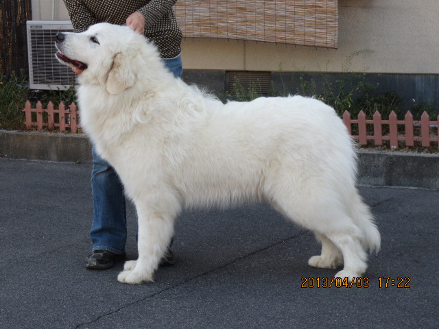 昨年8月に熱中症になり、九死に一生を得た松吾朗。。。三途の川のお花畑を眺めていたのに「松~!しっかりせい~!」「松~!逝ったらいけん~!」と言う母の雄叫びに呼び戻されて8か月が経ちました。丸刈りにしていたコートもここまで復活し、おまけに繁殖能力も復活し「お嬢」との間に6頭の仔犬も生まれました。そろそろまた暑い夏がやって来ます。ほかの子より先にサマーカットにしてやろうと思っています。コートがある松吾朗の最後の写真になるかも知れないと思い今回ドッグショーにエントリーしました。結果はチーンでしたが、リングサイドで松吾朗は母の腕にアムアムしようとしたり松吾朗なりに楽しんだようです。人前にあまりお目見えする事のない松吾朗です。松吾朗の仔犬のオーナー様も松吾朗を見たことがない人がいらっしゃると思います。おっとり、まったり、甘えん坊の松はこんなニューファンです。