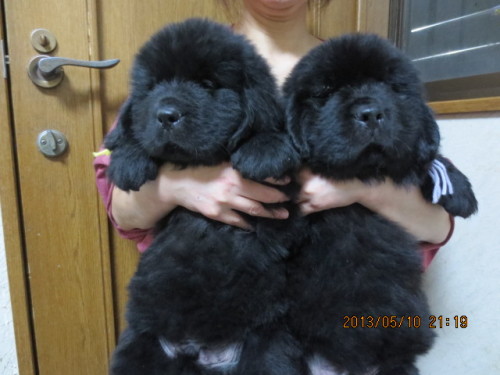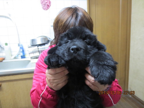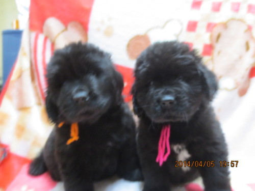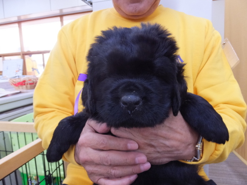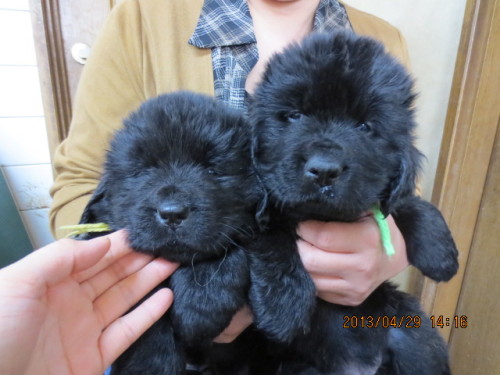 去る9日、11月17日生まれの楽ちゃん&ムックのBABY「ブルー君」改め「金ちゃん」が大阪のオーナー様の元へ巣立って行きました。お迎えに来て頂いたパパさんが「こんなに大きくなってると思わなかった」とびっくりされる位の成長ぶり・・・1月3日に見学にいらして1か月余り・・そりゃ、育ちますとも!先住犬の「はなちゃん」もランドシーアの女の子で乱ちゃんと同い年の9歳です。きっと乱ちゃんより優しいと思います。可愛がって貰えるかな?金ちゃん。もう1頭、ブラック&ホワイトのオレンジちゃんが我が家残留の「ルシファー」と一緒に育っています。日曜日までの短い間だけど姉妹で沢山遊ぼうね。