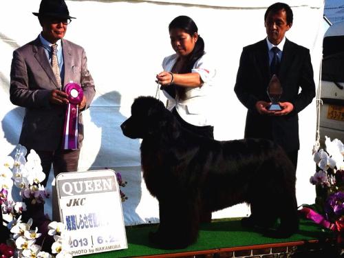 6月22日姫路しらさぎ愛犬クラブ展にておまめちゃん「クイーン」に輝きました。ニューファンにとっては恵みの雨で気温が上がらなかったのが幸いしたのか、最後まで頑張ってくれたようです。この日は「キング」もニューファン!びっくりしました。男の子には負けてしまいましたが、おまめ良く頑張りました。ハンドラーさん、ジャッジの先生方、ありがとうございました。クラスドッグは「おこげちゃん」ウイナーズビッチで2枚目のCC獲得でした。6月23日はおまめちゃん、グループサード。おごげちゃん、ウイナーズビッチで3枚目のCCでチャンピオンにリーチがかかりました。後1枚、頑張ってね「おこげちゃん」
