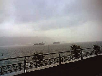 下関 唐戸からの関門海峡雨が降っていました風も吹いていました外国の船は何事も無いように航行していました息子の出勤前に娘達と一緒に皆で唐戸市場の見学に行きました私はよく仕入れに利用している市場なのでそう珍しくもありませんが子供達は是非行きたいと以前からおねだりしていたこともあり同行しましたら。。。「うおぉぉ~ すっげえぇぇ ~」 と 叫びましたでしょうねぇ・・・最初この市場を私も見たときは 感激でした様々な魚介類を扱うお店が所狭しと並び 業者のおばちゃんたちも値段があって無いようなお商売です 笑地物の岩海苔と生ひじきを購入して あと。。まぐろの切り身は息子が買って娘達はアジの開きを買いました市場の二階に食堂があったので朝食の定食を注文したら入り口に書いてあるメニューにも係わらず ありませーん 爆にこりともしないで 「無いです」・・・・ 楽しい唐戸見学はそこで どよーんとなって一人前 「1200円の定食」を 全員うつむいて食べましたまぐろは。。。生臭いし・・ あいそは悪いし・・・ 朝食にしては高すぎる定食!(;`O´)oいやだぁぁ~ こんなのぉぉって叫びたかったのですが・・・・我慢しましたとても勉強になり参考になる唐戸の夜明けでした  ̄▽ ̄ 。。。あすなろう・・・ ぼそっ