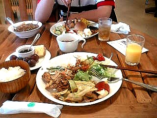 「僕だけど。。。あのぉ 長門まで帰っているけど 列車がない。。。」 ̄▽ ̄ へ ? 。 。 息子でしたどうやら木曜日はダイヤの変更で萩まで帰ってこれないとのことお昼の営業を切り上げて 長門まで迎えに行きましたずっと缶詰状態だった私も少し息抜きを兼ねて 息子とドライブがてら美祢あたりの 「オーガニックレストラン」とやらに行ってみましたお野菜を中心としたバイキングなのですが二人で2520円 。。。は まぁまぁかな夜勤明けでお休みだということで帰ってきたようですが(^-^)フフ・・・今夜は 予約で忙しい。。。長門までは爆睡してたらしいので しっかり手伝ってもらいましょ ♪ん? そういえば この子 またちょっと大きくなったみたい・・