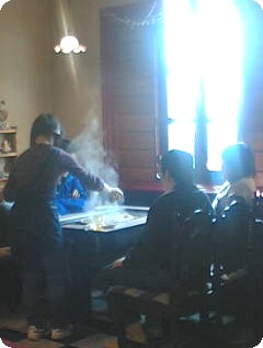 ごめんねぇ・・・ (^-^)フフ もんちっち兄弟くんと兄嫁さまあのもんじゃに惚れちゃったみたいねぇ面白かったのは むつみ豚の感想でした言葉で伝えるよりお顔の表情で すべてが物語れるものですね 心の中で 思わずもう一人のママは・・・・ガッツ!ポーズ 少し離れた厨房に三人の会話が途切れ途切れ耳にはいります穏やかなんですよね。。。これが また・・・可愛いバイトちゃんが真心込めて作ったもんじゃですゆっくり召し上がってね !昨日より少し寒波の緩んだ師走の昼下がりでした楽しいは・・・美味しいでしょ・・・湯気に包まれた窓際のお席は・・・こーくんのいつもの場所ね ♪ そこには きっと何かがあるのかな 笑 募金がまだまだ とっても不足のようです皆様・・・・どうぞ ご協力くださいませ・・・ お願いいたします