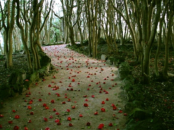 昨夜はご予約様お帰りになった後 バッタンきゅっ♪ でした www本日定休日ということで・・・まずはブログから・・・先日から数件メールにてお問い合わせのありましたので ブログのバック画面の写真のご説明を致します遅くなり すみません ^^;以前にもアップしたのですが・・・なぜか 人気のこの一枚 ^^;これは数年前 早起きをして誰も椿を片付けてしまわないうちにと思って撮りに行った一枚なんですが・・ 現場について はい。。。唖然としました噂には聞いていたのですが このような光景は生まれて初めてみたものでしたカメラマンもたくさん来ていて ずっと 待っているのです・・・・ はい? 何をって?それは・・・ 黎明を待っていたのですフラッシュは焚かないで自然の光芒を捉えたいからなんですね・・・画面右側から 朝の柔らかい光芒が さぁ~と入っているのが 解りますか?光の角度から かなり早い時間だということは確認出来るとおもいますこの小道の先には 朝日に輝く日本海があるのですよ 萩市の笠山虎ヶ崎という場所なんですが笠山の北端虎ヶ崎10haの広さに約25,000本のやぶ椿が自生しているのです笠山は、藩政時代には萩城の北東、鬼門の方角に当たるということで、毛利のお殿様は笠山の樹木の伐採や鳥獣の捕獲を禁止していました自然のまま残った群生林を萩市が道路整備を行い 観光地として甦ったと・・・まぁ・・概要はこういうことなんですが ここお気に入りの場所でたまに ふらぁ~とお散歩に行ったりします椿祭りがそろそろあるんじゃないでしょうか・・・?また 調べておきますねあ・・・そういえば その椿祭りに子供達と行ったとき 綺麗な椿を てんぷらでいただいた事がありました甘くて・・・不思議な美味しさだったような・・・・ (●^o^●)椿祭り 続編がアップ出来るように努力いたします (^-^)フフ