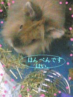 息子の部屋には同棲している毛深い彼女がいますというより・・・押しかけ彼女と申しましょうか・・・紹介者は 娘(妹)ですが・・・ ^^;この子虐待されていたところを動物愛護団体の人に助けられ見るに見かねて娘が勢いで連れて帰ったらしいのです娘が勢いで連れて帰り 飼える環境でないので 息子の所で飼う・・・ふむ・・娘よ!(;`O´)o にいちゃんに感謝しなさい~一応 うさぎ らしいのですが・・・見かけは・・耳が 短い ? のです顔も 笑える・・・ (≧∇≦)・・・驚いたのは 毛並みでしたふっさふさしていて まるで綿のかたまりみたいなのです息子の部屋に行く度に思うことは この子 たまにしか鳴かないけど何だか 哀れでたまらないのですゲージの掃除を掃除機と箒を使ってするのですが 異物侵入で怒ります wwでも 鳴けないから 最大限の怒鳴り声でしょう・・・ ぐっぐっという不思議な声を出します両前足で物に蓋をするような格好で掃除機を押さえます中々 しぐさが可愛くて つい作業を止めてしまうこともしばしば・・・ 「なんやねん・・・このおばはん・・・」とでも言っているのでしょか (^-^)フフ抱っこすると あったかくくて 心臓の鼓動が どっくんどっくんと伝わりますこの不思議な生き物でも 確実に 「命」ある大切な仲間なんて゜すね息子は言葉が少なく多くは語りませんが この子に大きな癒しを貰っていることでしょう息子の部屋に行く度に この子の身の回りのグッズが増えています おもちゃに始まり お菓子まで・・・ (●^o^●)大好物は 「ホワイトロリータ」らしいですあの菓子袋の音の聞き分けには脱帽しましたいきなり はんぺんは立ち上がってそれまで見せたことも無いほどのおねだりポーズですから・・・・ はい 飼い主に似て げんきんものが判明しましたそれ見て相好を崩している息子よ・・・ええかいなぁ・・・と・・・まぁ はんぺでした (●^o^●) !はんぺん 同棲したいかた いらっしゃいません ? (^-^)フフ
