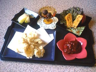 木曜日でしたか・・・・以前からご予約をいただいていたご婦人お二人にお出ししたセットなんですが・・・・・ 最近 席に座るとすぐに「とりあえず。。。生ビール」との声が多く ご希望によってはこういう感じでちょっとした付け出しもご用意していますこの日は 今が旬のイカのフライ 自家製のぴり辛トマトソース 自家製ヤマモモ酒 果物 厚焼き卵焼き を お出ししました 前もってご連絡いただいたお客様にはその日の仕入れにより準備しますお席につかれた後 しばらくの間 この付けあわせでお酒を楽しんでもらった後で気が向けば もんじゃなり お好み焼きなりをお召し上がれるようにしていますまた ご予約の折 お刺身等のご希望がありましたら それも可能な限りご準備もさせて頂いていますのでソースものにこだわることなくもんじゃz´のひと時を楽しんでいただければと思っています日中はまだまだ大変暑い日が続いていますが 夜には鈴虫も鳴く季節になりました小秋の宵は 静かに杯を傾けてみるのも いいかもしれませんね 杯に月 君が微笑む レトロ窓