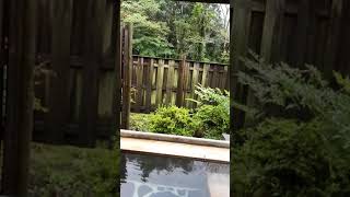 引き込みの源泉掛け流し、加熱適温、滑らかな肌触り、硫黄香、湯の華。安部川の瀬音。写真の左手方向に身延へ通ずる林道を上ると、安倍峠の近くでかもしかに遭遇。生息地らしい。