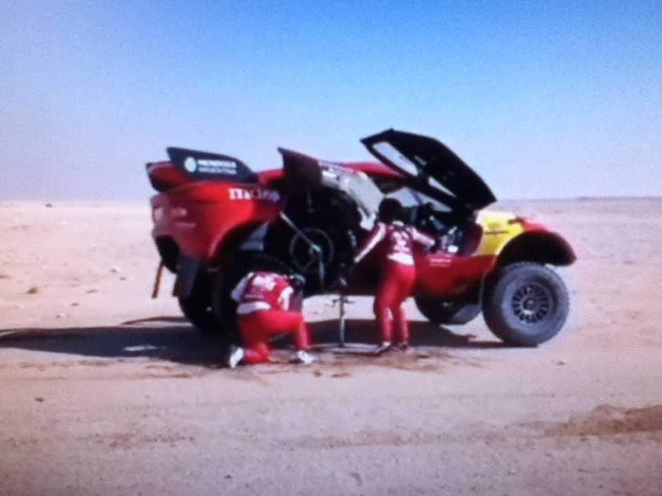 ダカールみていますとものすごく整備面が良くなってますね車体サイドからニョキニョキと生えるジャッキ以前は排気バッグとか膨らませていたようなそんな時代が懐かしい