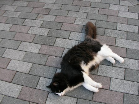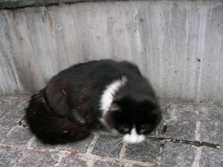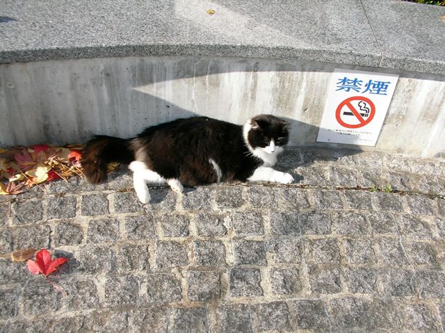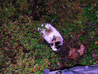 1.昨日の猫 昼に授業を抜け出して、ハローワークに行ったついでにビル裏の様子を見てきました。やっぱり植え込みの中に隠れて人が来るのを待っていました。傘をさしてやりつつ、手持のカリカリを全部やったところ、めずらしくほとんどを食べてくれました。たぶん、雨の日には誰も来ないので、朝から何も食べていなかったのでしょう。下の猫は長毛種(ノルウェージャンフォレスト?)なのでびっしょり濡れて、咳をしながらカリカリを食べていました。この冬を越せないかも・・。(写真は晴れの日に撮ったものです。) 夕方、帰りに通った時もどっかのおじさんが何かあげていたようですが、彼らに必要なのは「屋根のある家」なんですよね・・・。みんなわかってはいるでしょうけど。