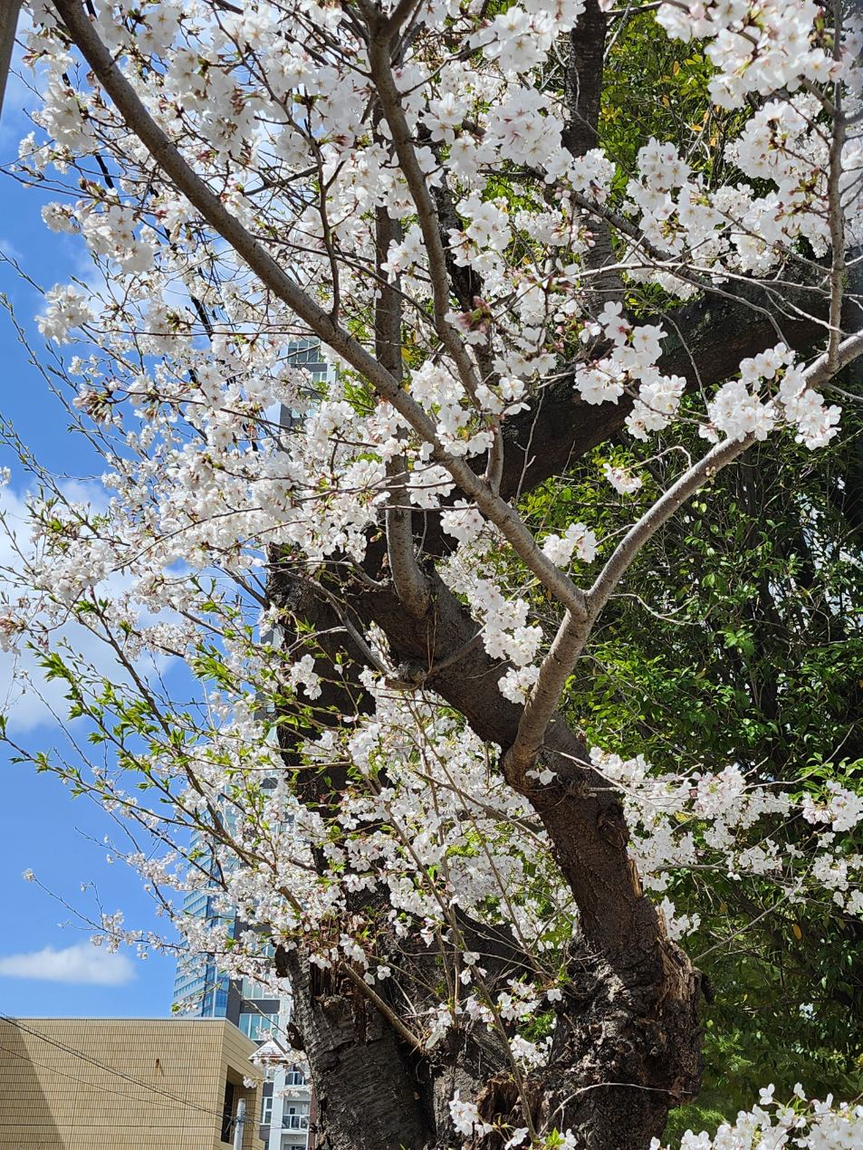 泥江(名古屋国際センター)の桜が満開になりました。今年はじつに3週間も桜を楽しめてます。