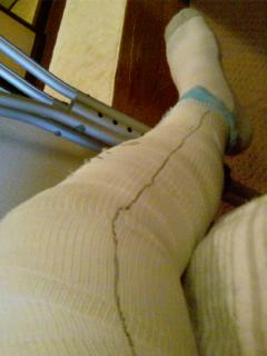 みなさんこんにちは!ジェラ・オナです。実はよりによって、去年のクリスマスイボに・・・・「イブとちゃうんか・・・?」階段から落ちて大怪我をしてしまいました。怪我の状態はこんな感じです。上から下まで、完全ギブスです。ちなみに全治6カ月です。ひざの4本ある靭帯のうち、2本が切れていました。そのうちの左外側の靭帯を、まずつないでもらったのですが、もう1度、今度はひざの裏の靭帯をつなぐ手術が必要らしいので、もーかなり・ブルーモードです手術の跡を見ましたが、20センチくらい縫い目がありました。6時間の大きな手術でした。もちろん、10日ほど入院していたのですが、クリスマスから正月まで、病院にいた、悲惨な新年でした・・・こーやって、見ると、自分の足先が、とてもとても遠ーくに感じます。もちろん、現在は松葉杖なのですが、これが又、つらい!!!ほんと、30メートルぐらい歩くと、もうバテバテです。今まで、松葉杖で歩いている人を幾度となく見てきましたが、ものすごーーーーーーーーーく大変です。。。。ほんと、なってみなけれゃわからない、障害者の気持ちとはこのことですね。今回の事件で、ほんと、この大変さ痛感しました。ちょっとした、階段。歩道の凹凸や邪魔な違法自転車。とても歩き難いです。今回、いろいろとこーいった事が勉強になりました。まぁ~頑張って直してこれからもネットやっていくので、これからも応援してくださ~い!!おしゃれは足元から・・・・Jealousy 楽天ショップはこちらから!