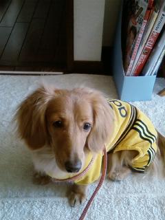 みなさんこんばんワン!ジェラ・オナ秘書のパフィーです。オナは何やら、クリスマスから突然家からいなくなり会社がつぶれ-そーで夜逃げでもしたのかなぁ~?と思っていたら・・・突然!正月明けにガンダムのモービルスーツを着たような格好で、帰って来て、ロボコップのような、ぎこちない動きでガシャガシャ家の中を歩き始めています。どーしたのかな?とパフィーは興味津々です~ぅ。今、オナは、左足をぐるぐる、フランケンみたいに包帯巻いているので、お遊びの好きなパフィーは大好きなオナに「アターック!」とその足に飛びついてあげます。オナは、とっても嬉しいいのか半泣きでうずくまっていました・・・「へへ」又、最近、パフィーは爪が伸びてきて、とっても気になるので、オナのギブスで、もーれつにカキカキしてやると(ダックスはカキカキ大好きです~ぅ)オナはこれまた、嬉しいのか、えび反りで声にならない声を出していま~すぅ・・・ 「へへ」最近、左足にじゃれると非常に喜んでいるみたいなので、どんどんアタックしちゃいます~ぅ。話は変わりますが・・・この間ネット通販の「犬天」でポチッタパフィーのお洋服公開しま~す。これです。「犬天」のサイトを見ていたら、あなたもこれで「ロナウ・ジーノ」ならぬ「胴長(ドナガ)・ジーノ」になって、ワールドサッカーに行こう!!のキャッチフレーズで、思わずポチりました。どう?似合ってます????このお洋服を着て、オナの足をもーひと蹴りしちゃいます~ぅ!!パフィーはいけない子ですか~ぁ? 「へへ」※本日のブログは実話に基づいて構成されています。 パフィーのアタックは本当に痛い!!衝動ポチはこちらでも・・・・Jealousy 楽天ショップはこちらから!