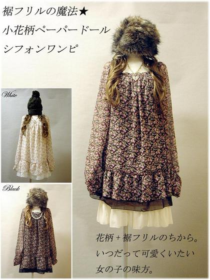 どうも!じぇらあにゃです^^すっかり正月気分も抜け、またたく間に平常日です@@最近、すっごく寒くって、ねつけなくてでも、病院行く時間が無くてついつい、安定剤飲んで、へろへろ~~~になっています><こうして人はウツになっていくんかな~昨日のテレビでやってましたが、ウツの人の8割は自殺願望があるそうです。こえ~!そうならんように、ためこまないようにしないとね!そんなこんなで、どこよりも早い新作紹介やっちゃうよ!まずはこれ!裾フリルが旬♪小花柄ペーパードールシフォンワンピース めたんこかわいい春の新作が登場!今年の小花柄の勢いは、すごいです!!!完売必須なので、要ちぇっくですよ^^つづいてこちら!【CROSS MY HEART チュニックニットワンピ】肩が少し開いてセクシー!たちまちあなたも着るだけくぅちゃんです^^さらに新作~!大人気で追加はんばいとなった、こちら!!【新入荷】中ほわほわ♪【ボアフーディメキシコパーカー】 コンパクトでもこもこしたクッキーロゴがきゃわゆぃ一枚これにあわせているショーパンはこちら!【毎日、もこもこ宣言♪ボアショートパンツ】やっぱりモコモコは、女の子の特権です^^まだ若干数あります!ディアプリ!完売間近です!いそいで~~~!!!【同梱不可】ドラゴンズ優勝おめでとう!【送料無料】サイズが選べる!【DearPrincess2008特別福袋!!】ディアプリンセス なんか師走より、今のほうが走っているような気がしてならないあにゃです・・・^^息抜きしたい方も、そうでない方も!!!Jealousy はこちら・・・♪