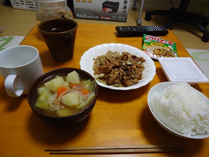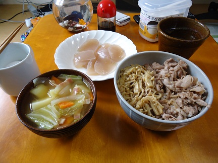 いや、でもこの忙しさが逆に楽しいですよwライトなM体質になりそうですwでもね、GWだからって連日はきついんですよ、正直・・・・・・・はい、明日もがんばります。ちなみに本日の食生活冷蔵庫にあった豚肉&エノキで豚丼featバターエノキを作りまして、それに野菜スープとゆで卵先生、そして下呂のおみやげのこんにゃくです。・・・ええ。4時に食いました。5時から10時までバイトあるんで、この時間に食べないとダメなんですよね~。相変わらずの食いっぷり。食費が泣いています。・・・・・・・・帰ったら腹減ってた(爆