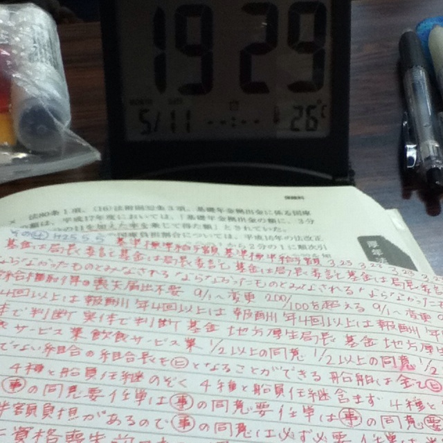 昨日の模試は悲惨でして。。。 あまりにできなさすぎて、笑いそうになりまして。 とにかく時間がないので、今日から朝勉開始! 30分でもやれは違うと思いたい(^_^;) 2012年度社会保険労務士試験まで、あと62日。
