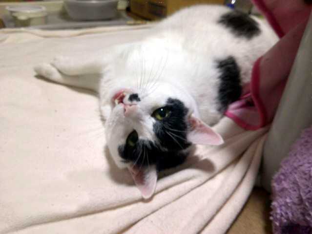 はち君(8)は電気敷毛布の上で寝転んでお返事してたよ