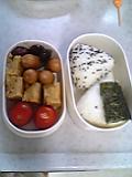 昨日の娘のお弁当。どんどん脱力していきます…。おにぎり2個。おかずは、大地ソーセージ、卵焼き、豆、プチトマト。デザートは、別タッパでいちご。料理部でライチさんに教わった卵焼きですが、今日は具なし、お弁当用に醤油と砂糖で味付け。卵2個で作ったので、まあまあ上手にできました。「何がおいしかった?」と聞くと「卵焼き!」と言ってもらえたので、嬉しかったです。(「いちご」って言われるかと思っていたので…)それから、一昨日の顔弁当。娘は、口の「トマト」を一番最初に食べたそうです。そして、昨日の大地。ベジタ(M)トマト2個 / ごぼう250グラム / たんかん350グラム / パセリ1パック / レタス1個 / わけぎ1束 / まいたけ1パック / サラダほうれんそう1パック