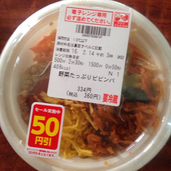 近所のファミリーマートが昨年5月末に閉店し、今日セブンイレブンがオープンしました。14日までオープン記念セールなので、野菜たっぷりビビンバが美味しそうだったので買いました。そのままでも美味しそうですが、ツナとマヨネーズをトッピングしてみました。具とご飯をよく混ぜた後、一口食べたら野菜とキムチ、そしてツナマヨの味がいい具合に混ざりあって美味しかったです。