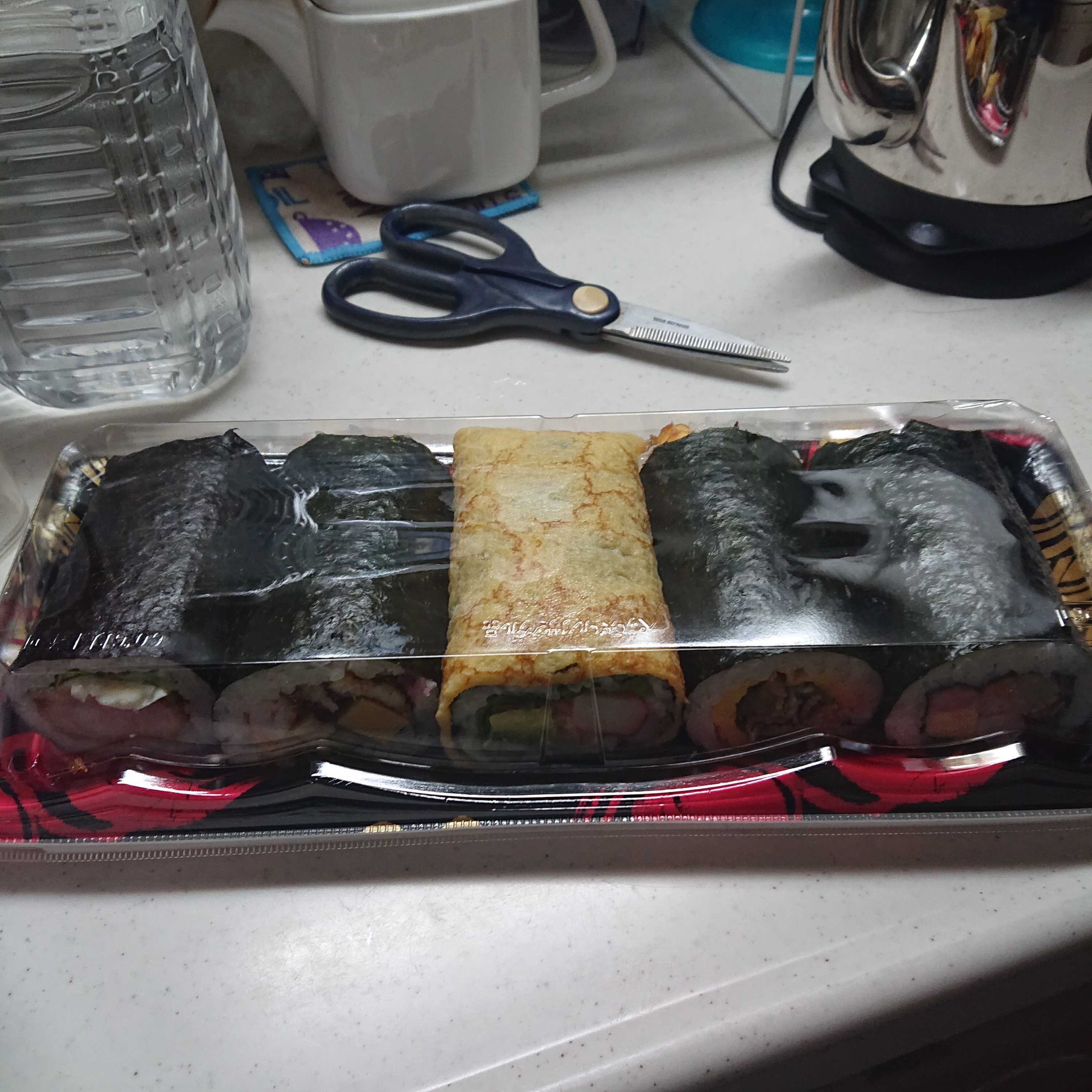 節分の恵方巻は、職場のスーパーで予約したものを食べました。ハーフサイズで食べやすかったです。