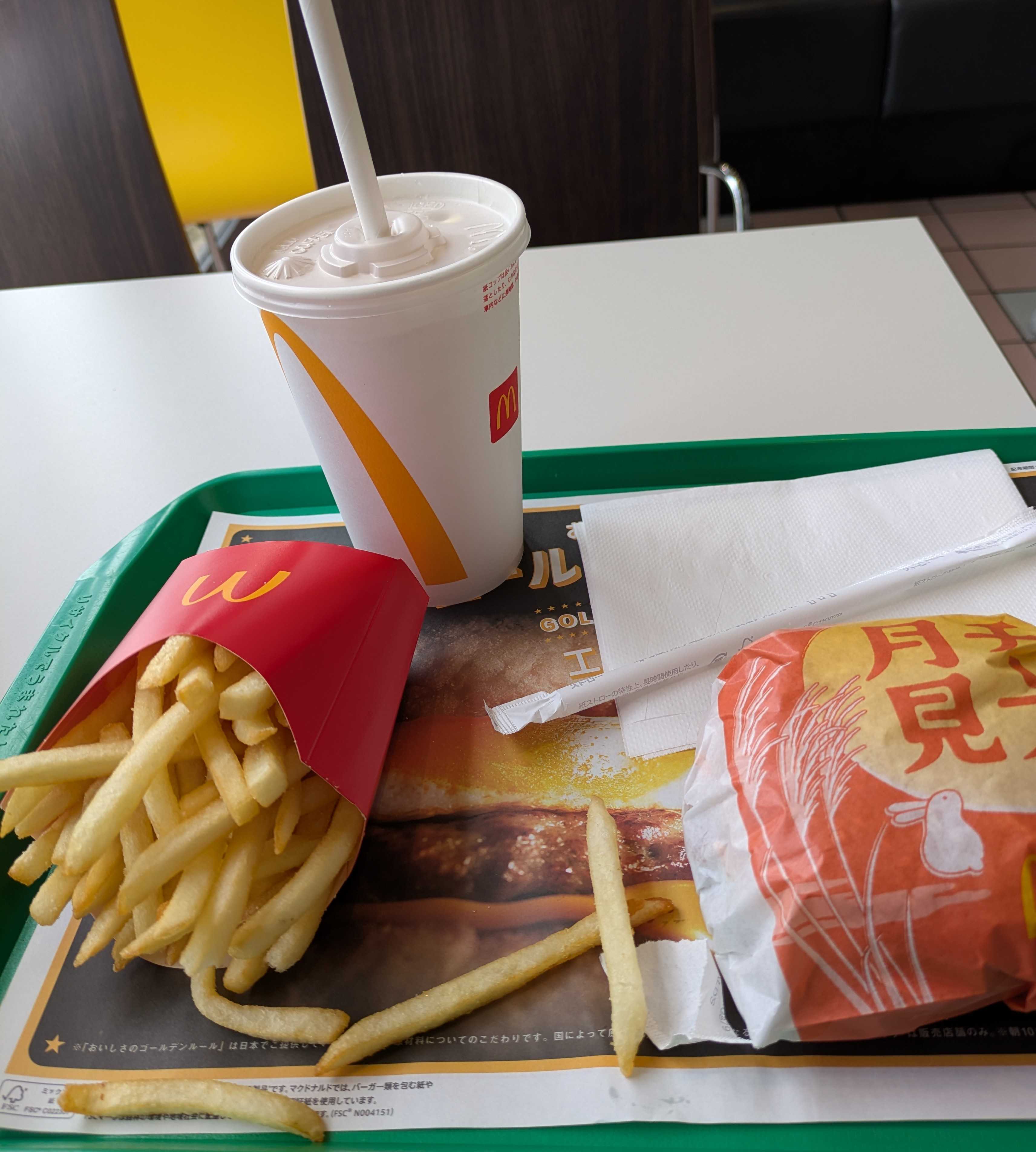 10年ぶりにマクドナルドへ行きました。チーズ月見バーガーのセットを頼みました。KFCの半熟月見バーガーとは違い、ベーコンとチーズとの相性が抜群で、美味しかったです。約10年ぶりに食べられて大満足でした。