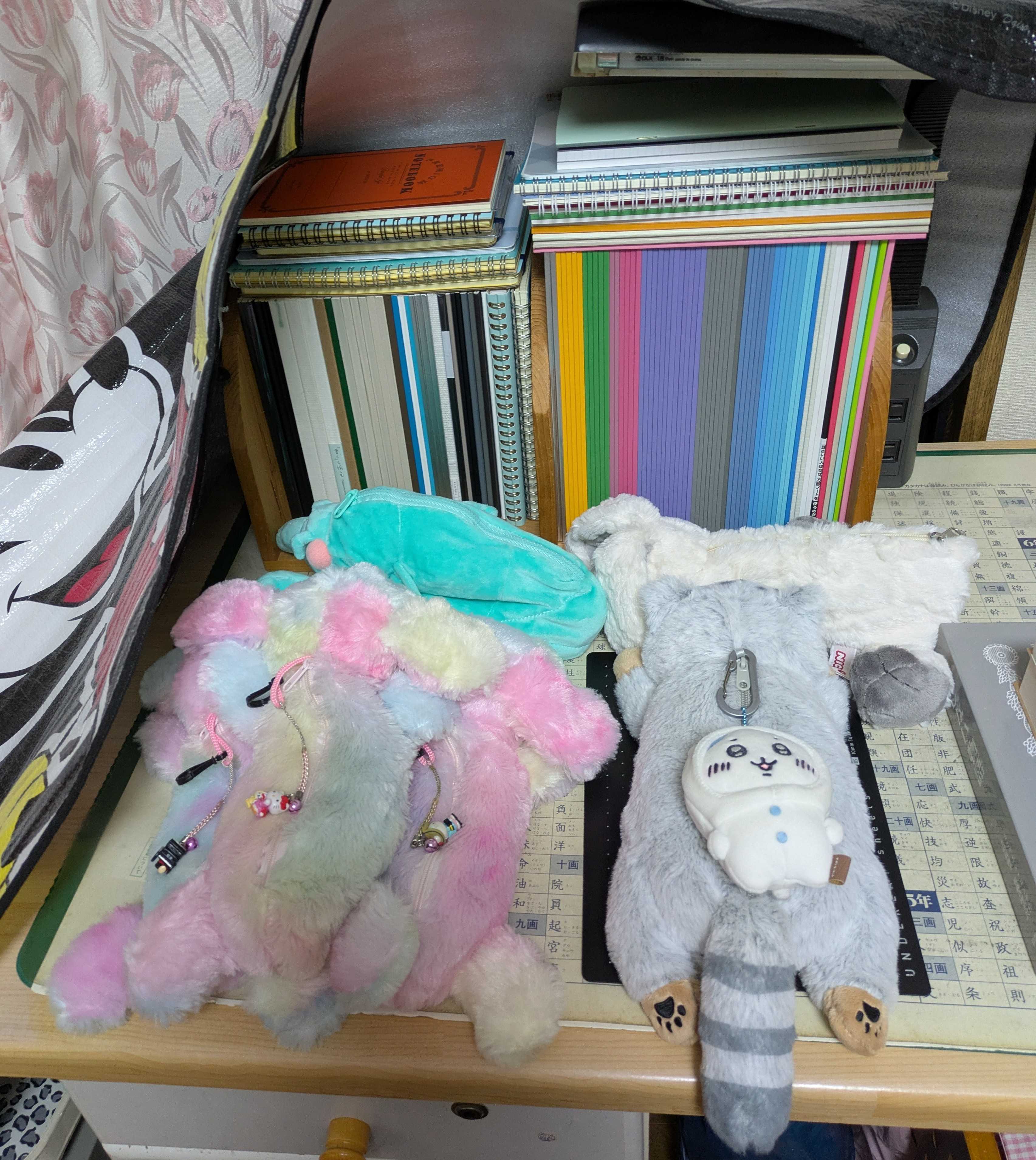 机の上がぬいぐるみ筆箱ばかりになり、ちょっとしたファンシーショップみたいになりましたw