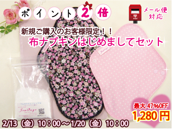 店長です今年もあっというまに8日・・・風邪などひいていませんか?先日、誕生日の友人におめでとうをしたら・・・なんと、韓国にいましたどんだけだよ~!彼氏とお正月から旅行なんて羨ましい事このうえなし!今年は私も・・・と、思っていたら手相を見て「仕事に生きる」と言われましたしかも彼に。どんだけなんでしょうね~・・・・さてさて!ジュランジェでは共同購入を開催中です布ナプキン一体型(そのまま使えるもの)がなんと半額630円でのハンマープライス(古いですか!?)今年はちょっと自分に優しい生理期間を過ごしませんか?布ナプキン専門店~ジュランジェ~