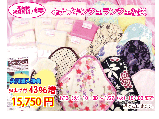こんばんは☆店長です今日は・・・共同購入で激安に♪GET!布ナプキン福袋のお知らせですしかも、ポイント3倍♪今年はこのセットで布ナプライフをスタートさせてくださいね布ナプキン専門店~ジュランジェ~