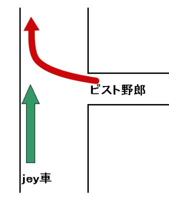 【ピスト ブレーキなしの競技用自転車 暴走で事故多発】http://headlines.yahoo.co.jp/hl?a=20100908-00000019-maip-sociもう4.5日前のニュースだけど、ホントに危ないし迷惑なんだよな!ピストとは、ドロップの本格競技用(風の偽物だけどね)だけではなく、400mmもないショートタイプのバーハンドルを着けたやつもいる。なぜ短いハンドル?渋滞でも車の間をすり抜けやすい・・・そうだ。<某ショップのコピー使う方は言うまでも無いが、売る方もアホだ。ペダルの幅は気にせんのか?あんたの肩幅は?てか変えられないだろ!!無意味じゃ。一部【トリック】というジャンルとして、クローズドな場所で乗られている方々に偏見は持ってません。むしろスポーツとしては推奨します。で、このショートハンドルの奴と事故りそうになった事あるんだよね。目的の方向が同じらしく、同じ国道の車道・路肩を走っていた。暫くして分かれる。ピストは国道沿いへ、俺は一本裏の車が少なく信号も無い道へ。しかし分かれてほんの5―600m位のT字路で、さっきのピストが国道側から合流して来た。危険だったのはその合流時。現場はこんな感じ。約25km/h平均で直進する俺の前に、一時停止もせず、更に大回り(右折でいきなり左端まで)で飛び出してきやがった!本来なら脇から出るなら一時停止してってのは基本。そして右折するなら、まず出て来た道を横断し、それから方向を変えるべきだろ!当然俺とピスト野郎は・・・時系列的に言えば、こうなるとこだった。でも俺、出てくるのが見えてたし、その後の動きが予測できた。向こうの動きみて車速とハンドル操作をしたんで、ぶつからずにすんだ。無事でした・・・俺はね。向こうは細かい制御が出来るブレーキが無く、しかも抑えの利かない(バランスの取りにくい)短いハンドル。しっかりコケました。軽蔑の視線を向けながらも『ダイジョブか』と声はかけてやったが、手は貸してやらなかったよ。交通ルールは守れない、違反車両に乗ってる上に制御するテクニックも無い。そんな奴にスピードの出る自転車に乗ってほしくないね!ママチャリにすら乗ってほしくないわい!相手が俺でよかったね。一人でコケるだけで済んで。車だったら死んでるかもよ。もしかしたら、こけたとこに車が来る可能性だってあったんだから。それならまぁ自業自得って事で済むが、相手が歩行者や自転車の弱者(老人・子供)だったら、加害者になるんだぞ!解ってんのか!?(解ってないからの結果だろうが)競輪選手の公道練習車だってトラック(専用コース)用とは違うんだぞ。ちゃんとブレーキも付いてるし。特に福岡、名古屋ではやってるらしく、取り締まりも強化しているらしい。記事によると、『福岡県警は7~8月に【制動装置不良】で4人に5万円以下の罰金となる切符を切った』そうだ。東京も増えてんだよ。ちゃんと取り締まってくれ!!ブレーキだけじゃなくて、ショートハンドルも取り締まってほしいもんだ。それから【無灯火】【携帯&メール】【ヘッドホン】してるやつらもな!本当は携帯とヘッドホンは、歩行者も禁止にして欲しいとこなんだよな。NYで検討されてる法案みたいに。ま、これについては次回書こう。