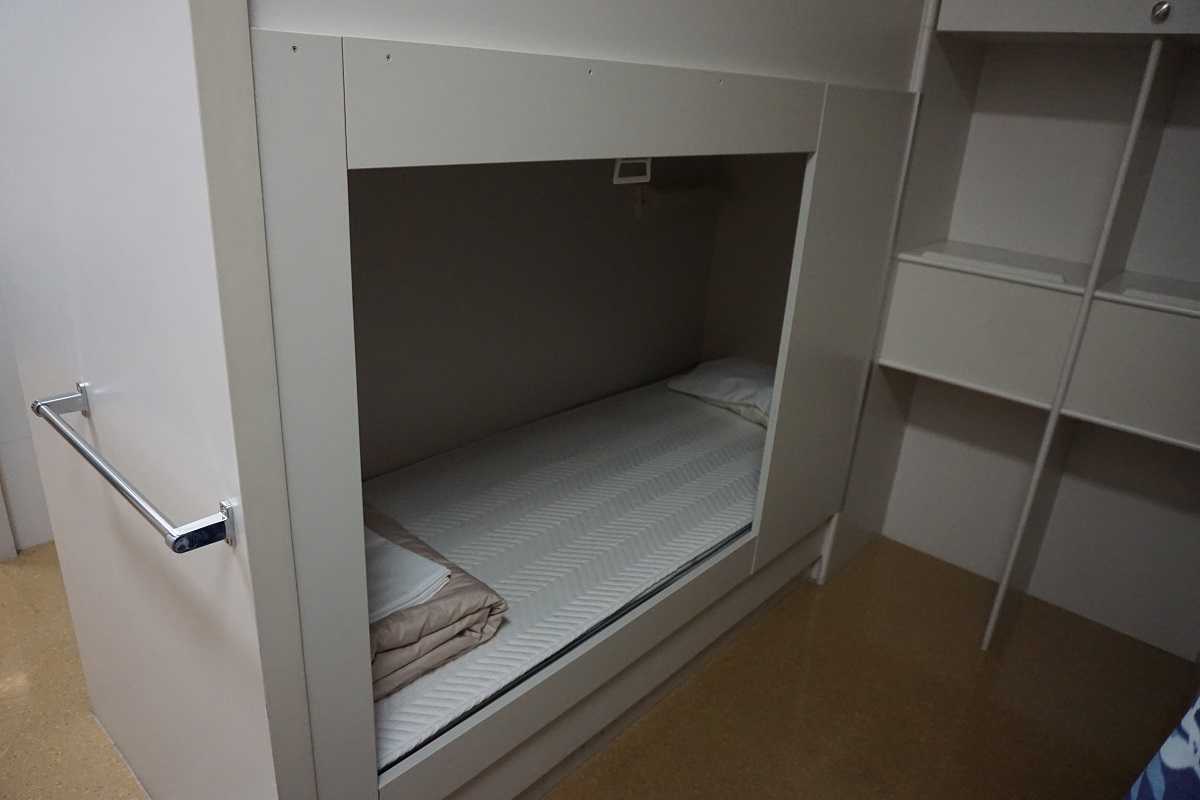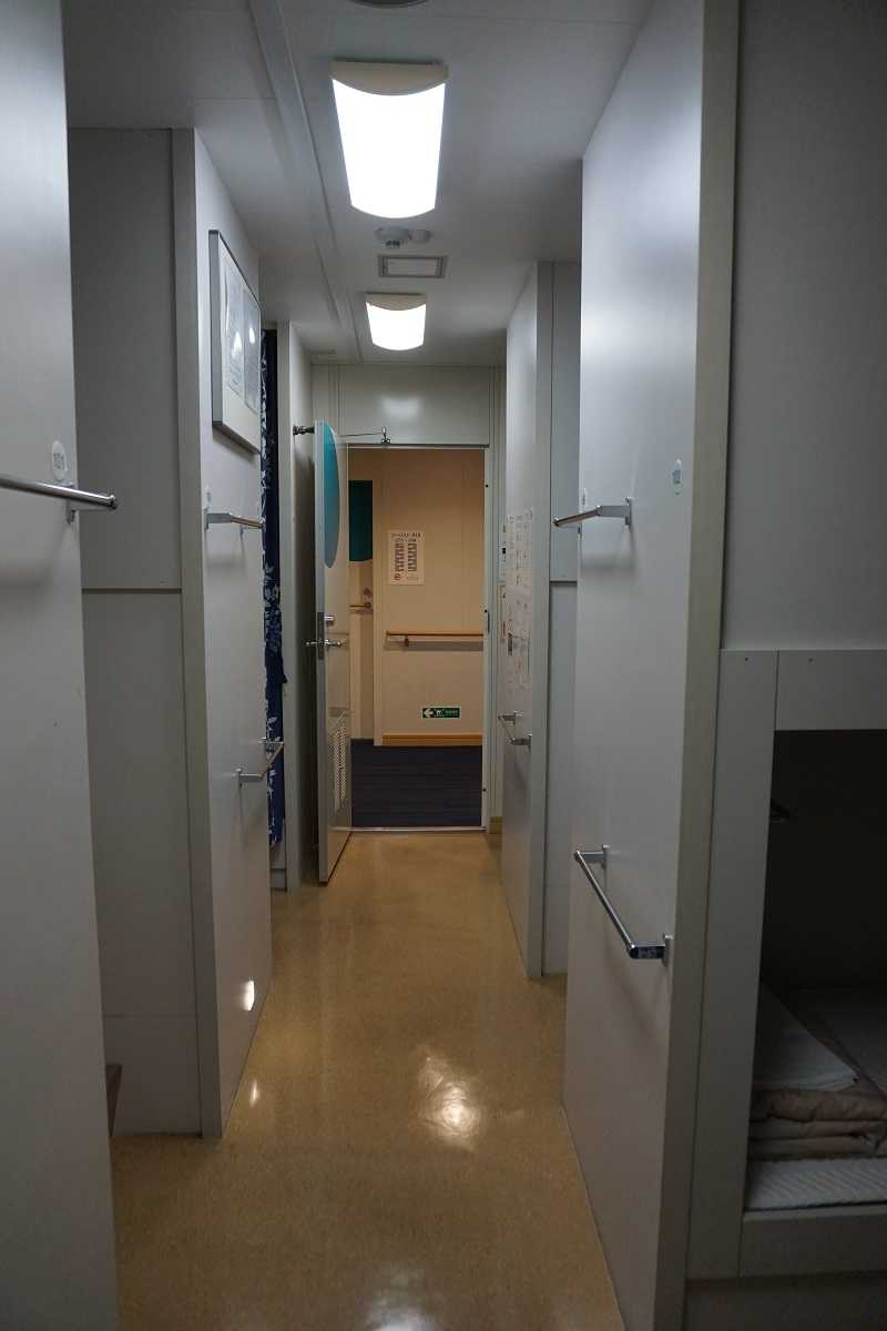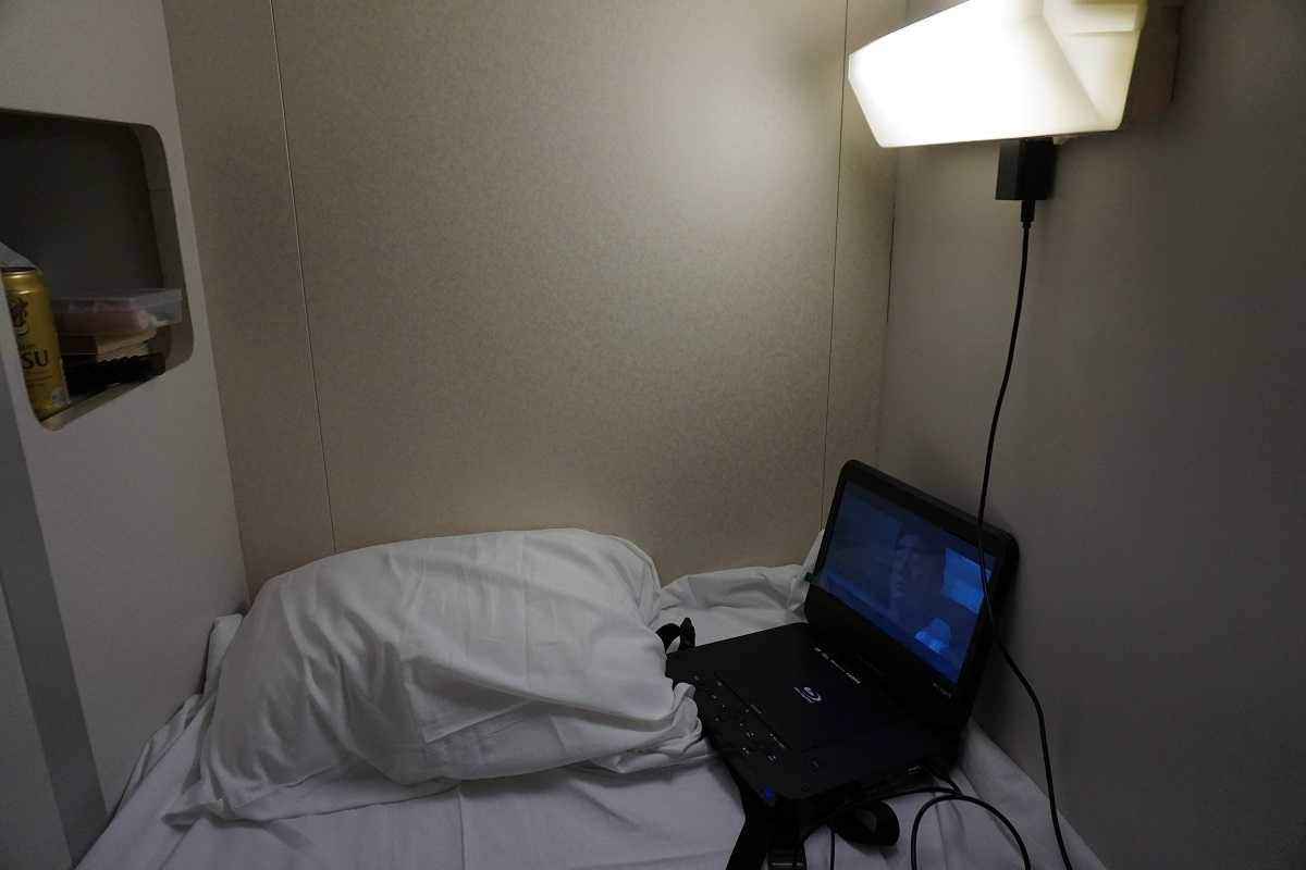 カーテンを閉めると一応プライバシーは保てる。 但し、カーテンに遮音性は無いので音は筒抜け。 要するにカプセルホテルそのままといった感じ。 但し、カプセルホテルでは装備されているテレビは無い。