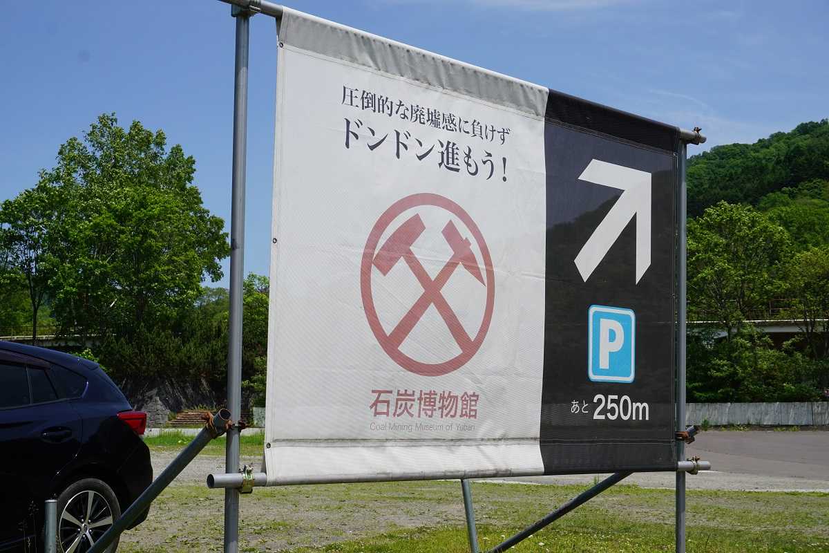 がらんとした駐車場。 クルマは居ない。 ひょっとして石炭博物館は既に廃業しているのか? そう思った時、忽然として大きな看板が見えた。