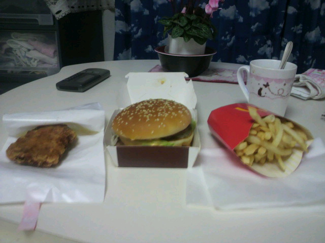 マックでハンバーガーとポテトとチキンを買って、初めての一人きりのクリスマスイブです〓