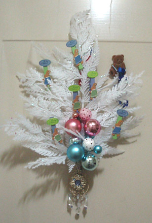 今年は、玄関用オーナメントをうさにしました(^ー^)予算は、600円くらいかな・・・浅草橋のビーズショップの隣に飾り専門の卸売店がありますここで青とピンクの玉と白いもみのオーナメントを購入しましたうさクリップは100円ショップですこれを適当に針金で固定して終わりです簡単で結構可愛いと思いますがどうですか(^^)おっと忘れてました一番下についているクリスマスオーナメントは300円してたから全部で1000円弱というところですね何でもガラス部分は、スワロらしいけど結構傷だらけでスワロらしくない;;;もう一つこれは、以前HPに書いたクリスマス帯です。100円ショップで買ったイルミネーションをつけて悪ふざけしました(^^;)つけると赤い光が灯りますこの帯は、2年前からもみのオーナメントを増やしていましたがこれがラストバージョン。ゆるい灯りがなかなか気に入ってます