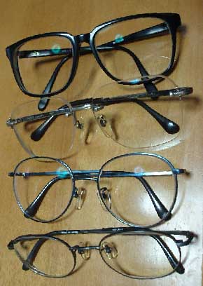 35歳を過ぎた頃から結構、メガネは頻繁に変えるのですが、生来が貧乏症の為、殆ど保管されています。・・・といってもマメではないので、いろんな所に適当に保管(?)されているのですが。いつだか忘れてしまったのですが、以前にメガネを外国に寄付している話を聞いた事があって、ネットで検索してみました。NPOジェスナ事務局(http://jecna.exblog.jp/)「スリランカへメガネを贈る活動」食器用の洗剤とティッシュで綺麗に洗ってから、ネットでの指示に従って、梱包します。夫+私のメガネ→う~~ん、どれも地味ですね(^^;)子供達がするには、かなり地味ですが、役立ってくれるといいな(^^)。子供の頃は勉強が大嫌いでした。(今もだけど;;;)勉強したくても、その環境がそろわない子供達。頑張って欲しいです。