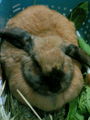 お友達のシッポぷうのママさんがセンターに連れて来られたうさを引き出して来ました。健康チェック等済んで引渡し可能になったようですので、あんちゃんの家族になってくれる方を募集しています。もう、二度とこんな事をされない方が早く迎えに来てくれるといいですね(^^)※アレルギーは、ペットを放棄する理由にはなりません。 アレルギーになったら飼わないと考えていらっしゃる方は、どうぞ飼う事をお控え下さい。以下、シッポぷうのママさんが某サイトにアップした記事を掲載させて頂きます。(シッポぷうのママさん了解済みです)あんちゃんは、超性格のいい子だそうです(^^)~~~~~~~~~~~~~~~~~~~~~~~~~~~~~~~~ 【募集地域】神奈川県、及び近郊(お届けにあがれる範囲で) 【仮名】杏(あん)ちゃん 【性別/年齢】 女の子・ミニロップ・生年月日 2007年6月ごろ生まれ 【毛色/特徴】 茶×こげ茶 【体重/体高】 2.7キロ(太りすぎています、体格から推測すると、2キロから2.2キロぐらいが標準だと考えます) 【募集に至った経緯】 処分が決定になっていた子を、センターから引き出しました。 元飼い主自らが、アレルギーの為に、飼育できなくなったと持ち込まれた子です。 すでに我が家では、9人のうさぎさんと暮らしております。 ですので、こちらで、素敵な家族に出会えたらと思っております。 【性格・癖・注意事項など】 元飼い主の元では、部屋んぽも多分していなかった事、それから食事がうさぎのおやつと称して売られているクッキーや、燕麦など・・・・ それらが原因で、太りすぎています。 今現在、普通のうさぎさんと変わりない食事に変更ができましたので、これで少しづつでも、体重が減っていく事と思われます。 継続して、体重管理をお願いします。 とても人懐っこく、今では葉っぱの野菜が一番お好みです。 また、部屋んぽが大好きで、外にでると、すごい勢いで、走り回ります。 【条件】 アンケートにお答えいただきます。 室内飼い、病気への理解。 安易な繁殖は、なさらない事をお約束頂ける方。 誓約書に記載をお願い致します。 引渡し前には、必ず面接、身分証のコピーの提示をお願い致しております。 引渡しは、こちらからお連れいたします。 引渡し後も、近況報告等をお願い致します。 遠方の方でも、一度こちらに面接に来ていただく事が、可能であれば、お引渡しには、当方から連れて行きます。 未成年の方の場合には、保護者の方の同意が必要です。(保護者の方に直接お伺いいたします。 【健康チェック結果】 ●ワクチン:うさぎなのでありません。 ●トイレ躾:ほぼ完璧に、トイレは使います。 ●不妊・去勢手術:未不妊 ●血液検査:致しておりません。 獣医さんにて、健康診断は済ませてあります。目立った病気なども無く、大変健康だとお墨付きを頂きました。また、歯の方も、不正咬合などはありません。 【連絡方法】 usausa-sun@jcom.home.ne.jp シッポぷうのママ(さん) 一度は、人間に見捨てられた子ですが、どうか杏ちゃんが終生を幸せに暮らせるような、家族になって下さる方はいらっしゃいませんか? どうぞよろしくお願い致します。 ギャル文字などを使ってのメッセージの方へのご返信は致しかねますので、ご了承下さいませ。 ~~~~~~~~ダイナマイトボディなあんちゃんを愛情でステキボディにしてくれる人が出てくるといいですね(^^)