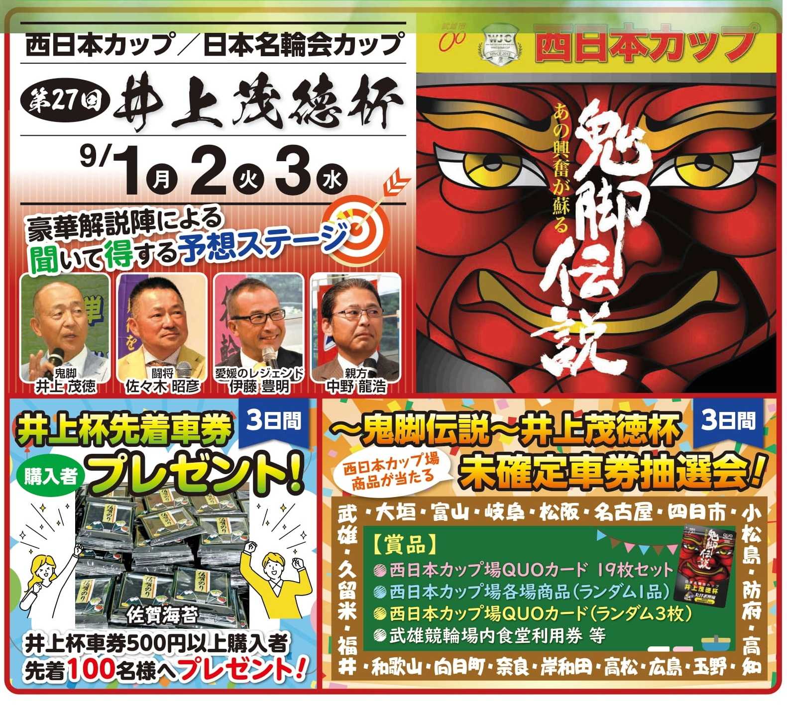 BANK8月号では、たけお競輪9月開催の井上茂徳杯FⅠのご紹介で鬼脚 井上茂徳さんにご登場いただきましたが  BANK8月号>>​ こちら