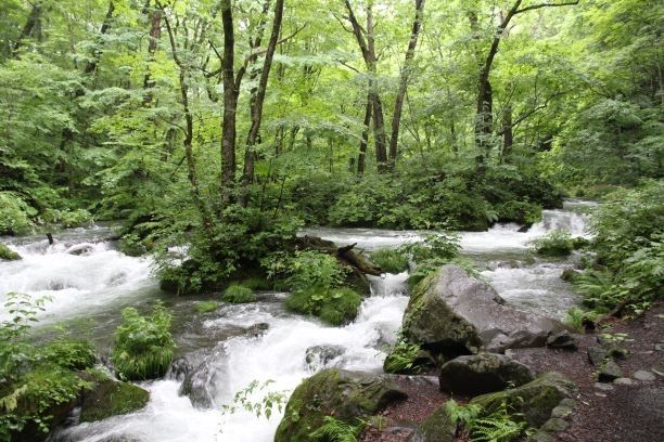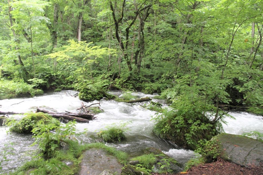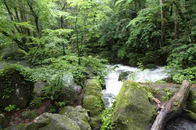 梅雨の奥入瀬は緑に満ちた癒しの世界紅葉の時期に奥入瀬渓流を歩いたことがある人は本当に幸せだと思う。そこは自然が織りなす色の展覧会。一方、春から夏にかけての奥入瀬は緑のグラデーションに包まれた世界。緑という色のバリエーションの多さとその癒しの力に驚かされる。梅雨の奥入瀬渓流を歩いてみた。今年は流れる水の量は例年よりも多く、そこに漂う空気も肌が水の存在を感じる程しっとりとしていた。雲井の滝も水量が多く、迫力があった。奥入瀬渓流の散策では滝を目当てに巡るのも楽しい。