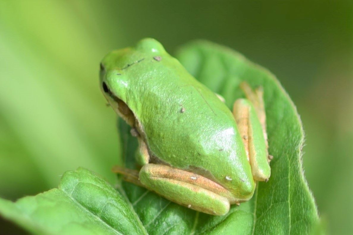 我が家の庭には小動物がたくさんいる。時折、玄関の取っ手やインターホンに陣取っているのがアマガエル。決して怖い訳ではないが思わずドッキリする。