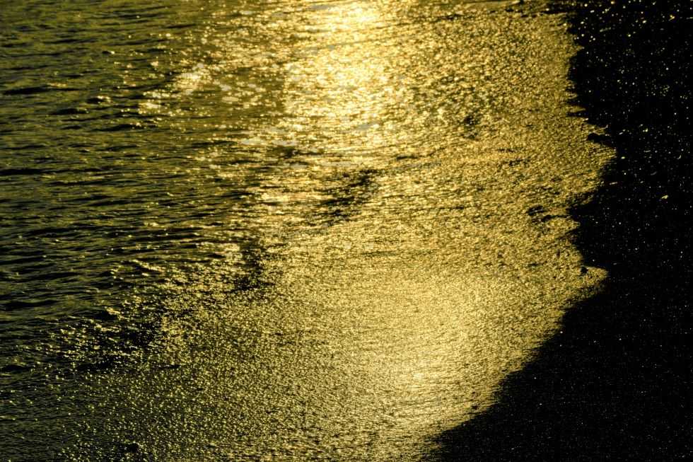 暖かな陽気に誘われて、今日も散歩がてら浜辺を歩いてみた。目を下に向けると、傾いた陽の光が浜辺をやさしく包んでいた。