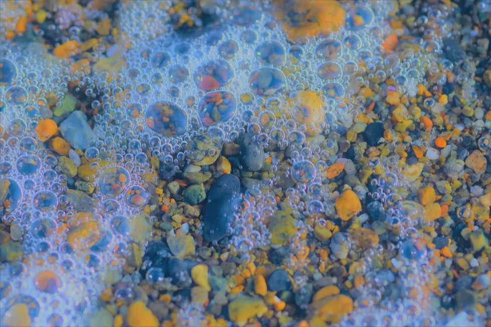 冬の日の昼下がり、気分転換がてら近くの辺を歩いてみた。荒波で角が取れた小石たちが波に濡れて輝いて見えた。マクロレンズで近づいてみると、燈台下暗し。そこには色彩にあふれた海辺の小宇宙が広がっていた。