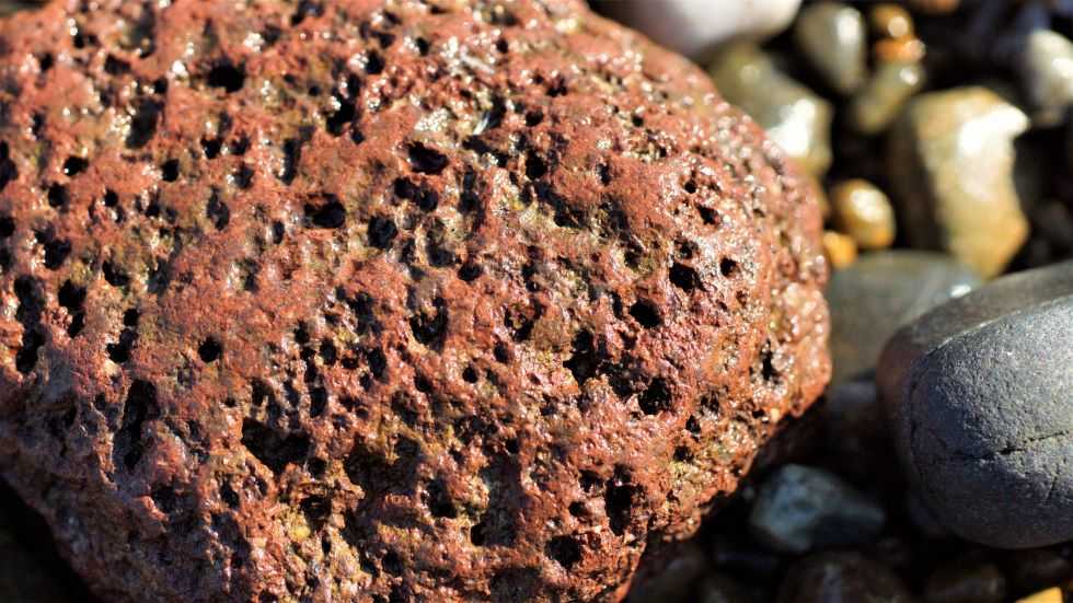 今日はいつもの大洗海岸から平磯海岸に散策場所を移動。干潮時の午後4時頃を目指して家を出発。ちょっと風が強かったものの天気は上々。波もとても静かで、磯の先端まで足を踏み入れることが出来た。平磯海岸といえば、那珂湊層群のタービダイトと呼ばれるユニークな岩石群で有名。約7,500万年前の中生代白亜紀の地層が磯場に広がっており、アンモナイト等の化石も採れるらしい。さて、そんな太古の貴重な岩石群を横目に、今日も珍しい石がないかあちらこちら探してみることにした。すると、波に削れられ丸みを帯びた無数の小石たちの中に、ひとつ奇妙な形の赤みを帯びた石?を見つけることが出来た。赤い石はよく見ることが出来るが、こいつは鉄錆びを纏った赤褐色をしており、表面もかなりゴツゴツしている。持ち上げてみると、「んっ、これは自然の石か?」と一瞬疑ったが、よく目を近づけてみると他の小石たちも混ざりあってひとつの形を成している。何より、磁石にしっかりくっつくではないか。自然界にも磁石にくっつく石がいろいろあるので、ひとまず持ち帰って調べてみることにした。帰宅して、鉄を含む自然の石をネットで調べてみたが、磁鉄鉱や鉄隕石を含めて、外観がこれと類似するものが見つからなかった。この近くの那珂湊は幕末に水戸藩が大砲を作った反射炉があった場所で、鉄の鋳造と縁があることから、人工物である可能性も捨てきれない。ということで、とりあえず私の「何だこれミステリー」の石となった。