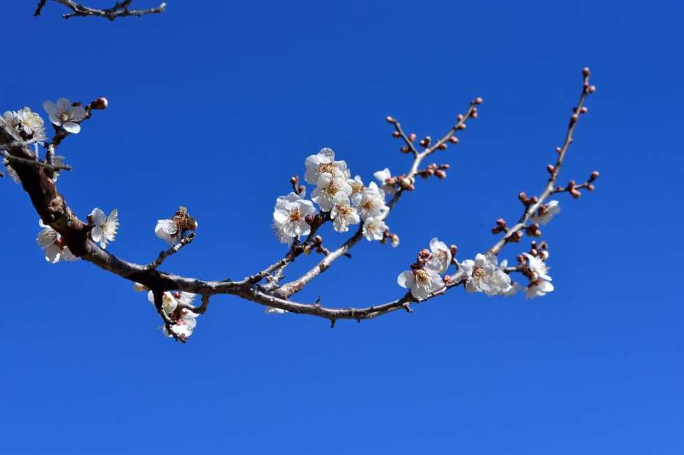 今日、2月5日時点ではやはり梅の花の咲き具合はまだ早い。