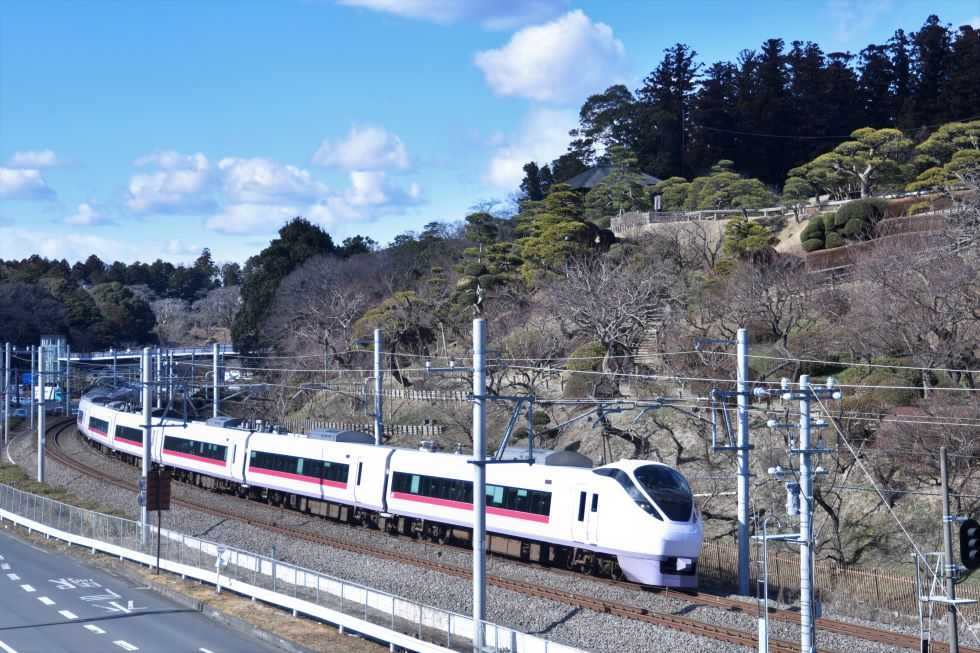 今日は好文亭の下を走る常磐線特急「ひたち」を近くから撮ってみた。